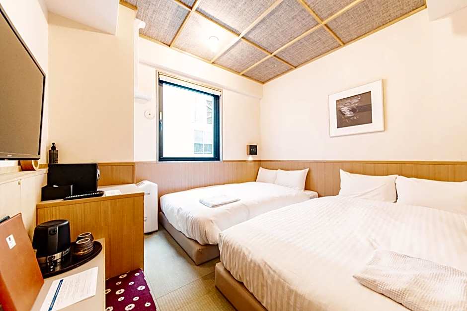 Providing free toiletries and bathrobes, this twin room includes a private bathroom with a bath, a shower and a bidet. The air-conditioned twin room provides a flat-screen TV, tatami, a dining area, a safe deposit box as well as a quiet street view. The unit offers 2 beds. **From 10Aug 2023, Housekeeping service is only offered for stays of more than 3 nights for sustainability practice.